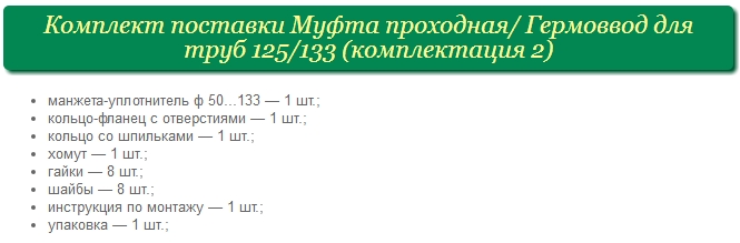 резиновой манжеты переходным диаметром 125-133 мм. с кольцом в виде фланца со шпильками и ответным кольцом в комплекте с гайками М8 - 8 шт.